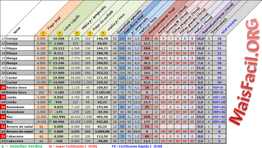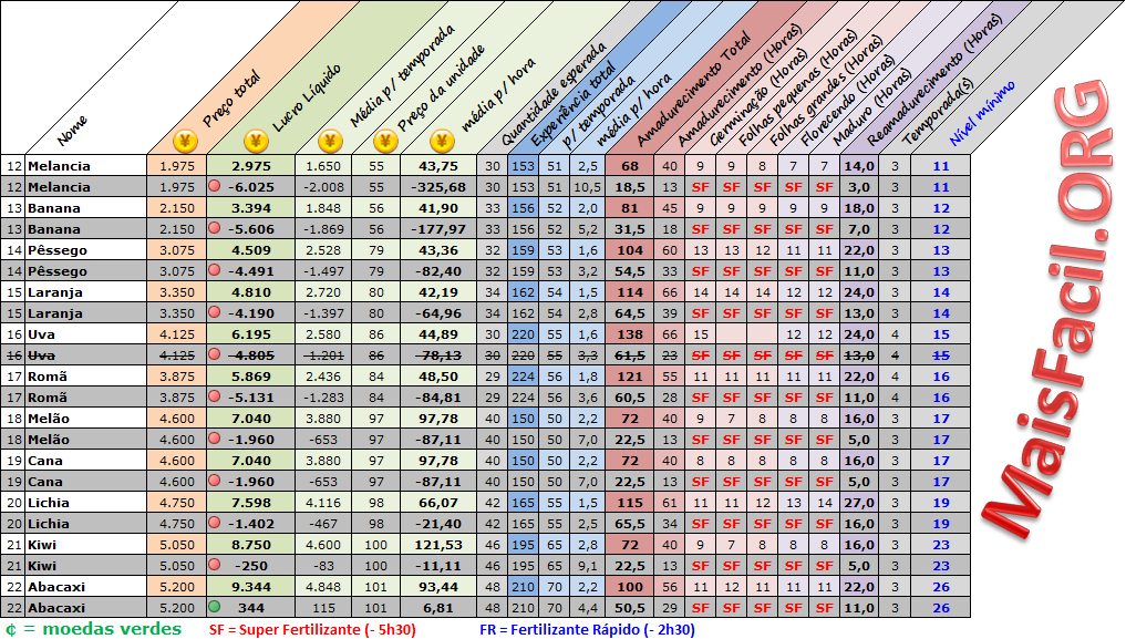 Tabela de Sementes Avançada + Fertilizantes